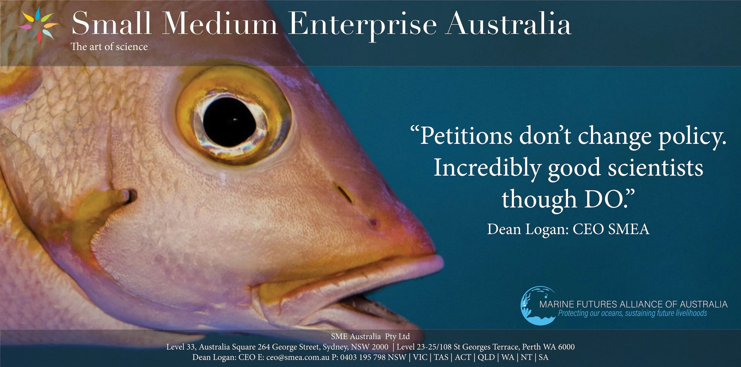 We are funded by the private sector and by some amazing people who believe the environment deserves better than lame ideologically driven science. OR no science at all. Take marine parks as an example!